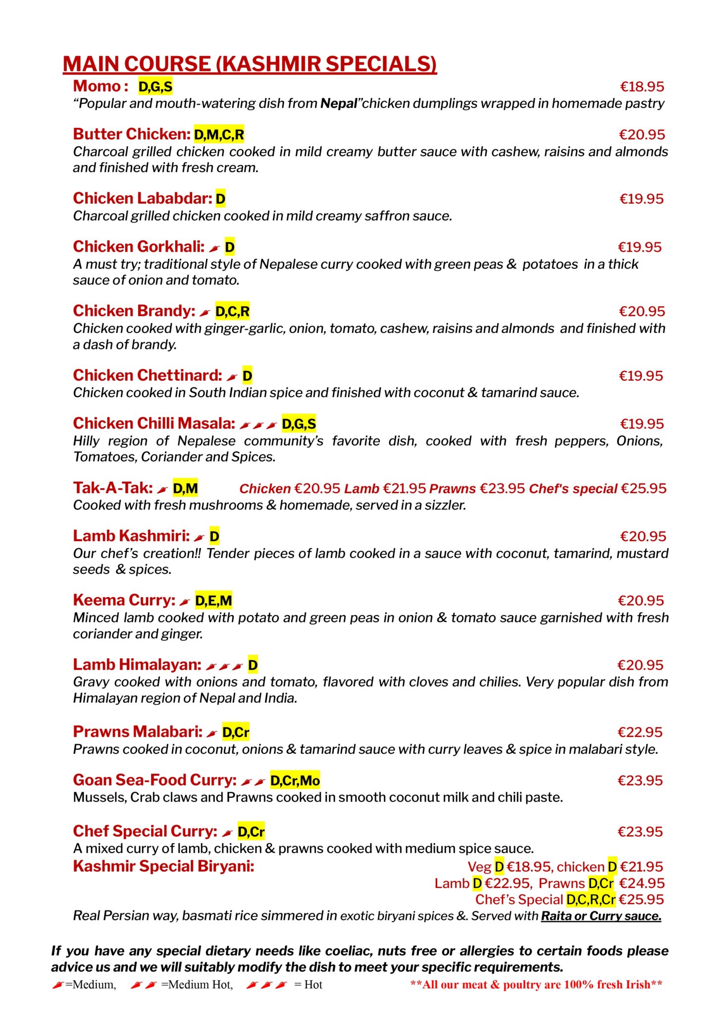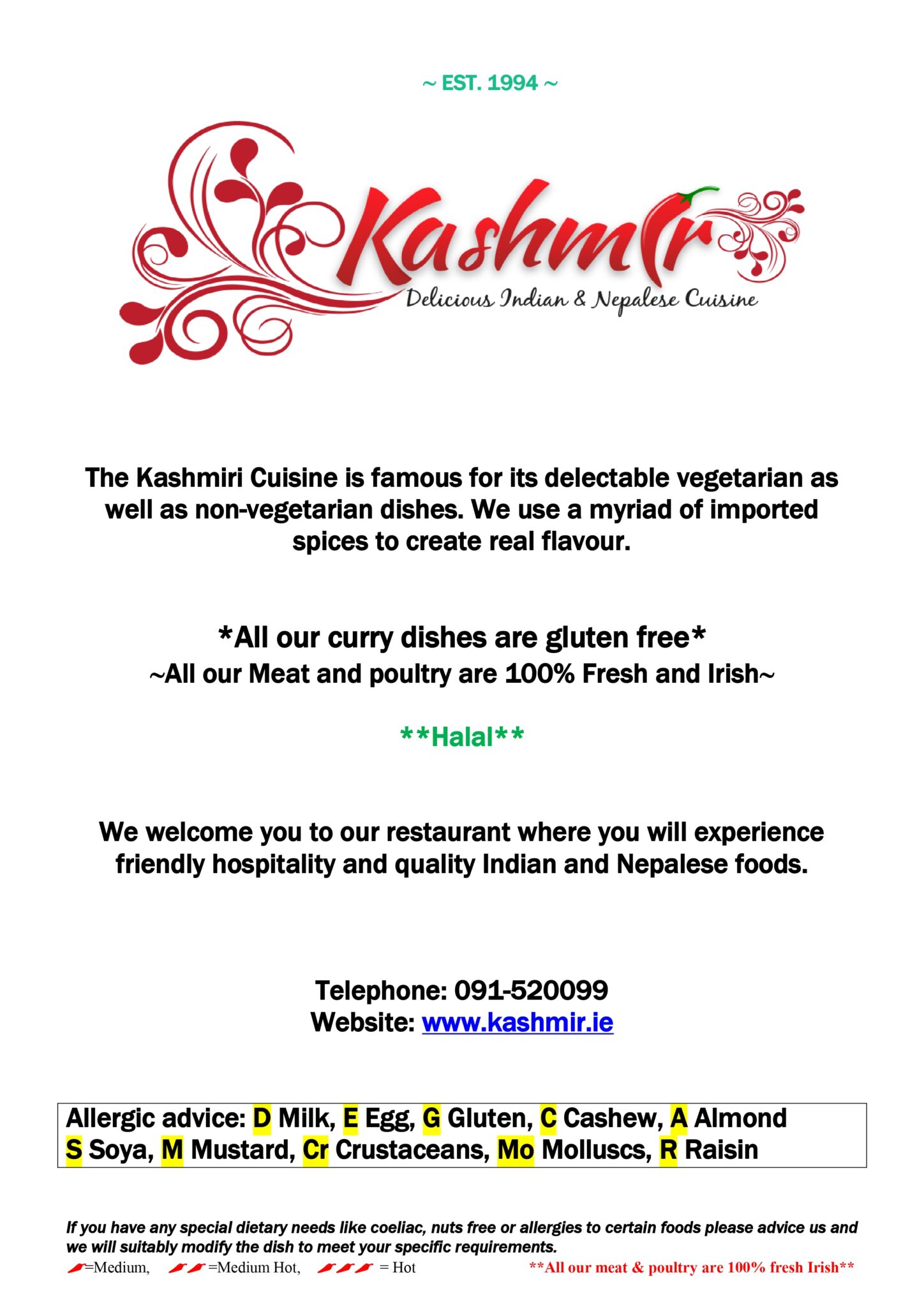 Restaurant Menu- Take Glimse of Kashmir Menu | Kashmir Indian and Nepalese Cuisine Restaurant